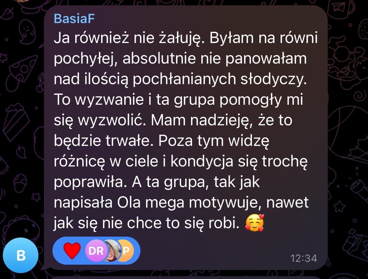 Ta grupa to miejsce naszych codziennych spotkań, miejsce gdzie codziennie się motywujemy, miejsce gdzie codziennie wrzucam instrukcję co danego dnia powinnaś zrobić aby osiągać jak najszybsze efekty.